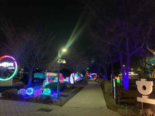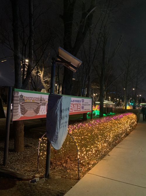 옛 기차만 있으면 초라할까봐서 온갖 전등으로 치장을