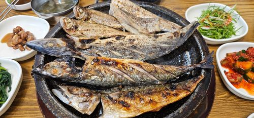 생선이 모듬으로다섯가지에 영양돌솥밥집