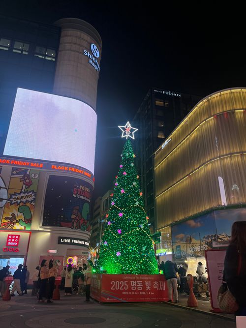 명동1가는 서울을 대표하는 관광지 중 하나로, 특히 크리스마스 시즌이 되면 더욱 활기차고 화려한 분위기를 느낄 수 있는 곳이다. 12월이 되면 명동 거리 전체가 반짝이는 조명과 크리스마스 장식으로 꾸며져 마치 축제 현장처럼 변한다. 거리 곳곳에는 크리스마스트리와 전구 장식이 설치되어 있고, 밤이 되면 따뜻하고 로맨틱한 분위기를 만들어 많은 사람들의 발길을 사로잡는다.