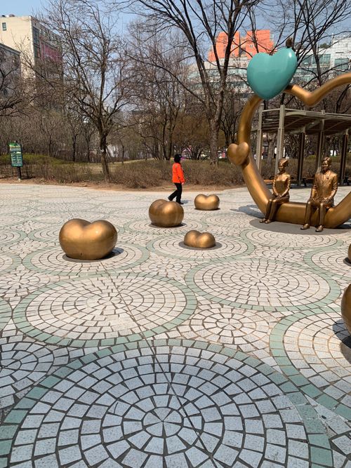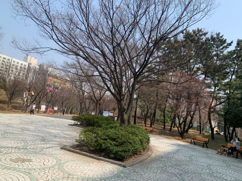 푸르른 나무들이 만들어주는 시원한 그늘 아래 벤치에 앉아 쉬거나, 가벼운 산책을 즐기기 좋습니다. 특히 4월이면 벚꽃이 만개하여 더욱 아름다운 풍경을 자랑합니다. 작은 연못과 분수도 있어 보는 것만으로도 힐링이 됩니다.