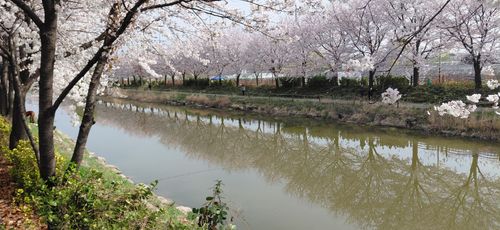 서운천 벚꽃길을 산책하며 봄을 만끽한다. 가벼운 산책, 숨찬 러닝 어느 쪽이라도 좋다. 눈과 코를 자극하는 상쾌함으로 숨이 벅차다. 물 위에 투영된 벚꽃나무로 두번 즐기는 꽃놀이다.