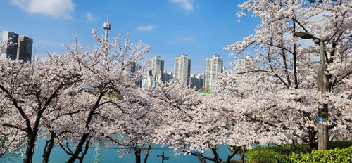 아침 벚꽃 너무 멋지네요~~ 여기 벚꽃은 밤에는 완전 다른 꽃으로 변신하더라구요. 조명이 너무 쎄서~~^^