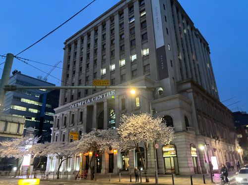 사진 찍은 곳은 올림피아 건물인데 건물과 벚꽃이 참 잘 어울리더라고요.