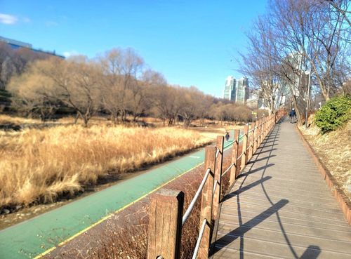 다시 길을 따라 쭉 걷다 보면 여의천 방향으로 이어지는데요, 이쪽 길도 정비가 잘 되어 있어서 계속 걷기 편해요. 그러다 보면 양재시민의숲이랑 양재시민의숲역 쪽까지 자연스럽게 이어져요.