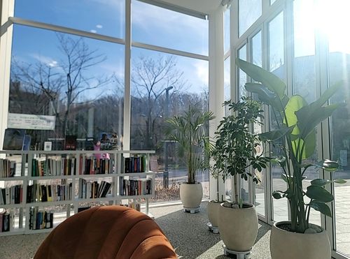 중간쯤에는 수변문화쉼터가 있어서요, 여기서 잠깐 쉬어가면 좋아요. 커피나 차 한 잔 마시면서 앉아 있을 수도 있고요, 비치된 책을 읽기에도 분위기가 잘 맞아요. 산책하다가 자연스럽게 한 번 끊어가는 느낌으로 딱이에요.