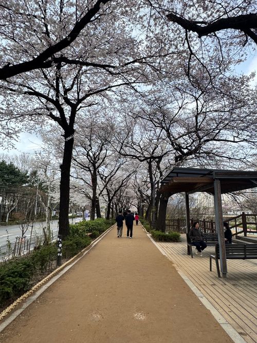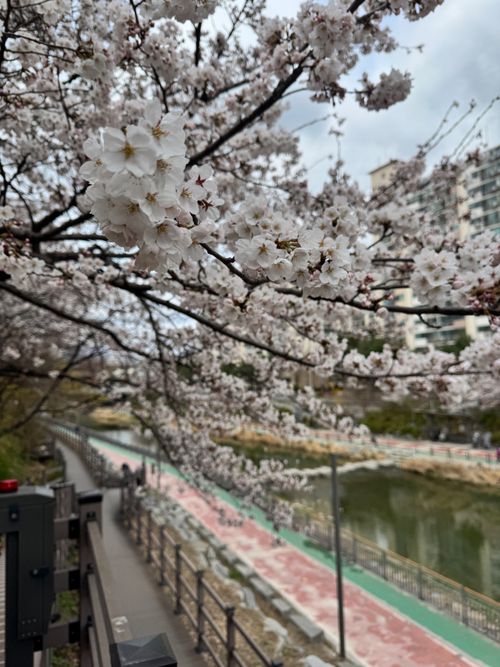우이천은 길을 따라 흐르는 물소리와 함께 벚꽃이 자연스럽게 어우러져 있어서, 걷는 내내 마음이 편안해진다. 화려하게 꾸며진 느낌보다는, 일상 속에서 문득 발견한 듯한 소박한 아름다움이 더 크게 다가온다. 바람이 불 때마다 꽃잎이 흩날리는 모습은 괜히 사진을 찍지 않아도 기억에 오래 남을 장면이다.