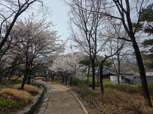 남산한옥마을 담벼락을 따라 피어난 벚꽃들은 한옥의 운치를 더해주는 벚꽃명소입니다.