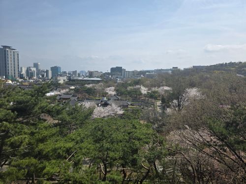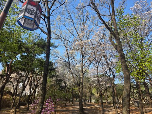 1.아주 많은 벚꽃나무들이 있는건 아니지만 한옥 담벼락을 따라 피어있어 자연스러운 멋을 풍긴다는 것입니다.