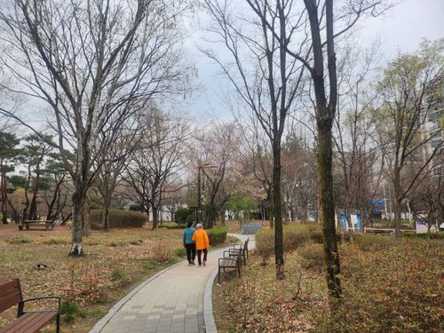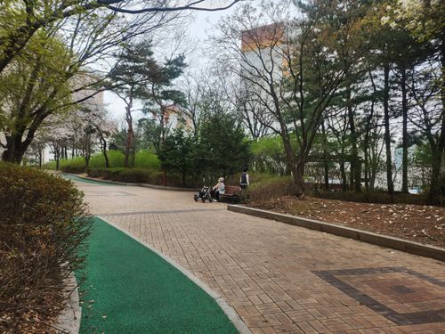 공원을 빙~둘러서 산책할수있기에.. 많은분들이 걷는모습, 뛰는모습, 애완동물과 산책하는 모습, 유아차로 아기와 산책하는 모습, 어르신과 요양보호사가 산책하는 모습등.. 정말 꾸밈없는 평화로운 모습들을 볼 수 있네요^^