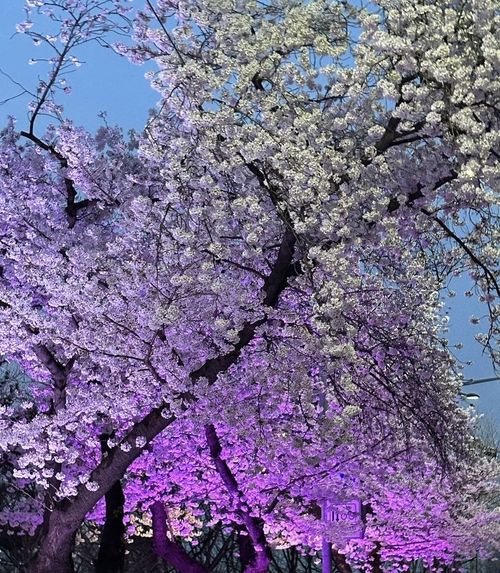 특히 보랏빛 조명을 받은 벚꽃은 더욱 몽환적이고 신비로웠습니다. 시원한 밤공기를 마시며 걷던 그 시간이 벌써 그리워지네요.
