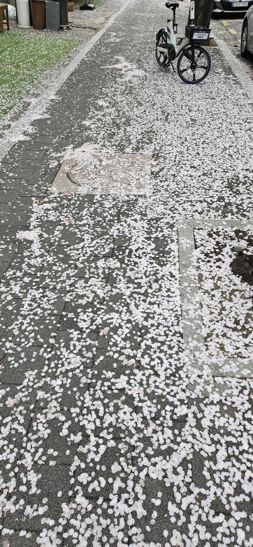 평소에는 그저 익숙하던 아파트 단지와 도시의 건물들이 벚꽃과 어우러지니 마치 다른 동네에 온 것처럼 낯설고도 아름답게 보였습니다.