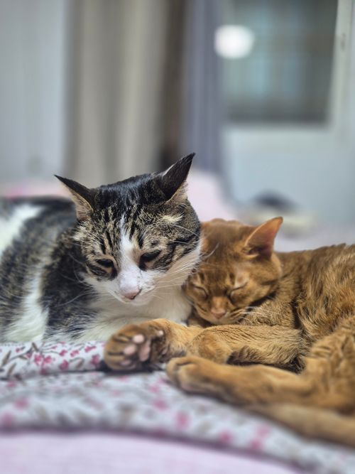 둘이 어찌나 정이 깊은지, 무늬는 달라도 꼭 붙어있는 꼴이 영락없는 단짝이네요. 날이 조금 쌀쌀해지니 서로 체온 나누며 낮잠 자는 모습이 정말 천사 같지요?